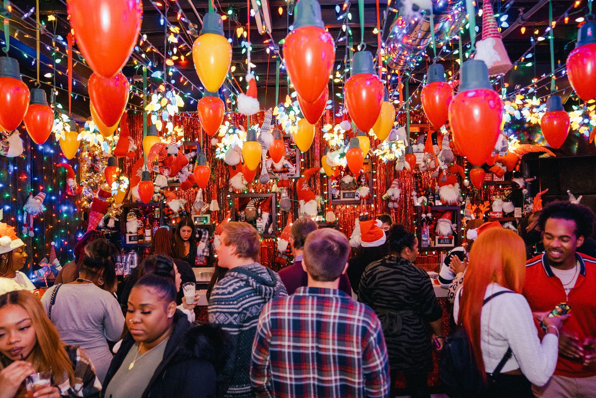 With four bars serving specialty holiday cocktails, spread across three decked out floors with floor to cieling decor, there's a festive nook for everyone - whether you're a Santa enthusiast or just here for the holiday party. Book your holiday party at Frosty's Christmas Bar.
